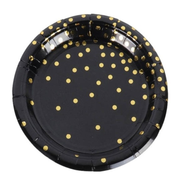 KIT 10 PRATOS 18CM PAPER- BOLINHAS PRETO DOURADO