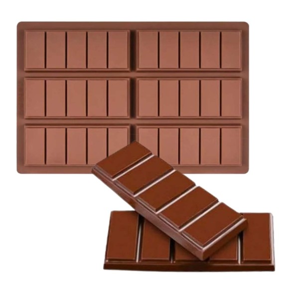 FORMA EM SILICONE PARA BARRA DE CHOCOLATE COM 25CM - 06 CAVIDADES